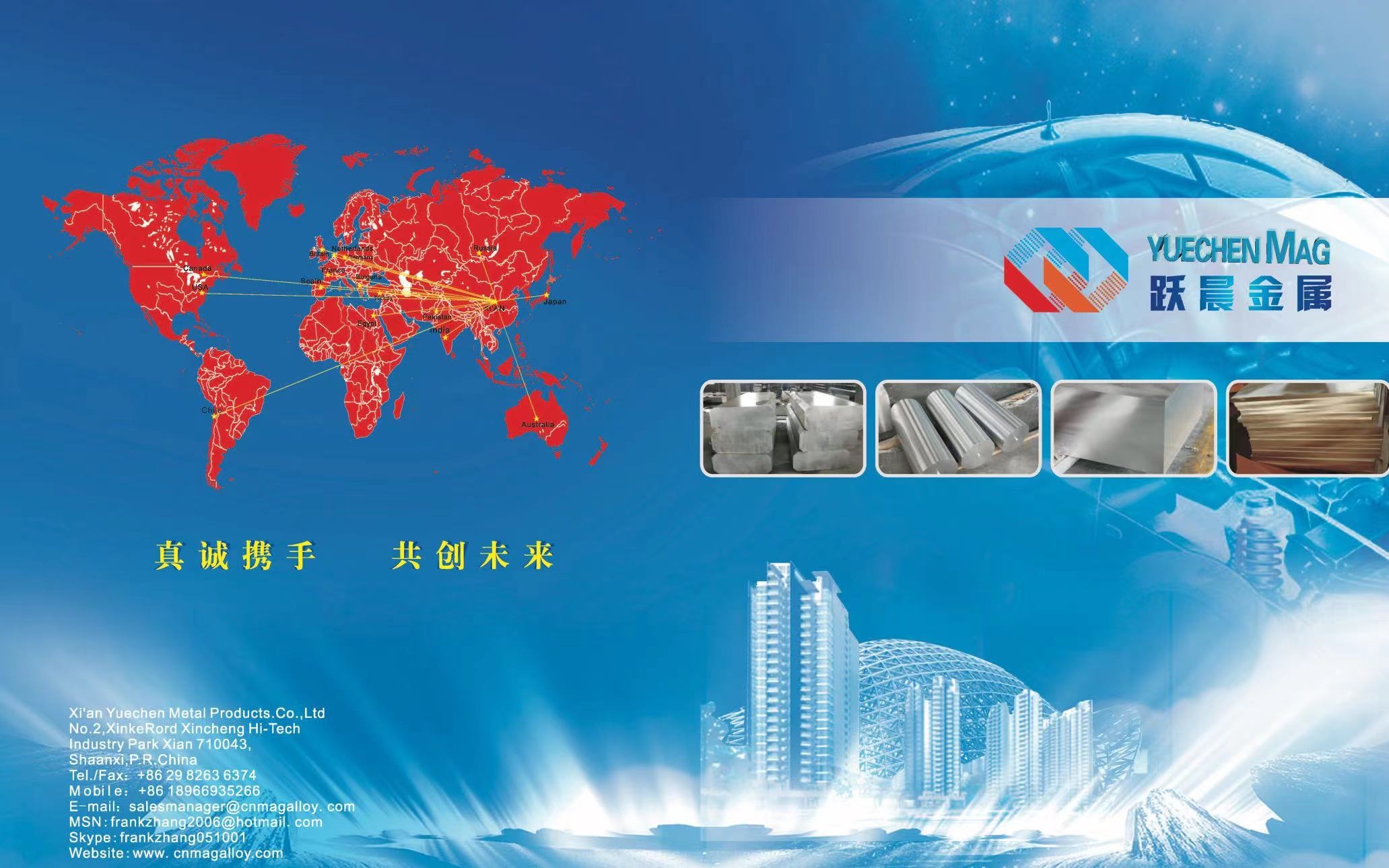 西安躍晨金屬制品有限公司是一家專業從事鎂合金產品的研發、生產和銷售為一體的企業,主要產品有鎂合金熱軋薄板,中厚板,鑄板,鑄棒,擠壓管材,擠壓棒材,擠壓型材,鑄件,鍛件以及機械加工件。